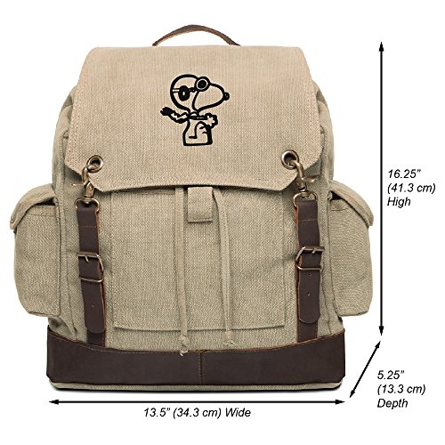 -. Title : Snoopy Flying Ace Vintage Canvas Rucksack Backpack with Leather Straps