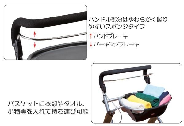 | 洗練された北欧デザインの室内専用歩行車。バスケットに物を入れて運んだり、バスケットの上にトレイを乗せて、お茶やお菓子などを運ぶこともできます。日本の住環境や日本人の体形に合わせた設計。 |