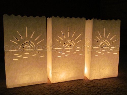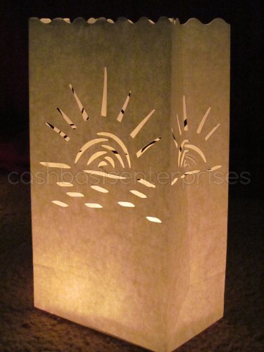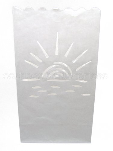 CleverDelights White Luminary Bags - 20 Count - Sunset Design - Wedding, Reception, Party and Event Decor - Flame Resistant Paper - Luminaria