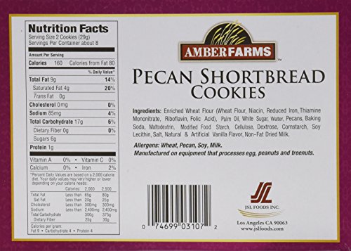 NEW Amber Farms Pecan Shortbread Cookies Pack of 2 Boxes of 8oz =1lb