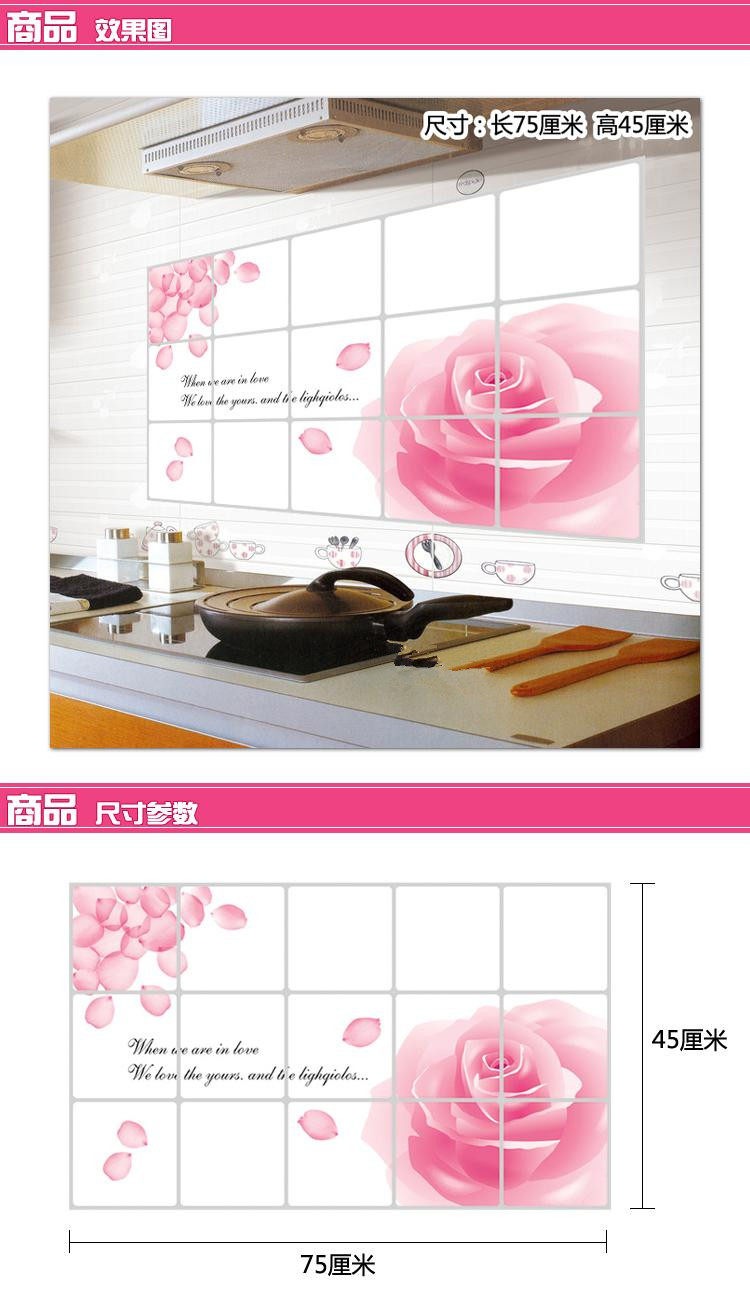 (买1送1)玫瑰花防油贴 高档铝箔耐高温美观防水不褪色可擦洗厨房好帮手