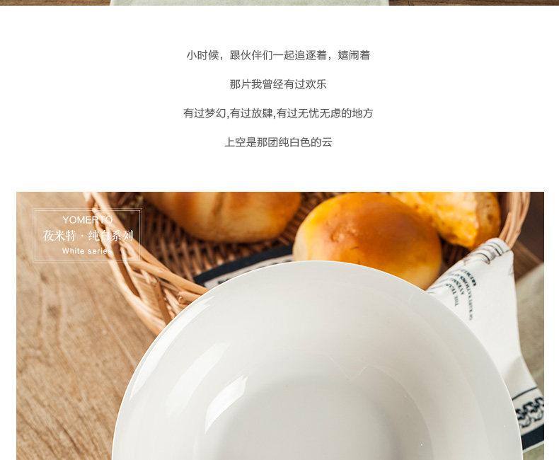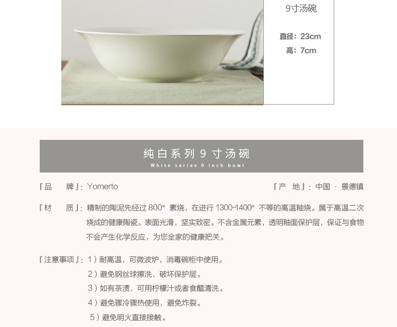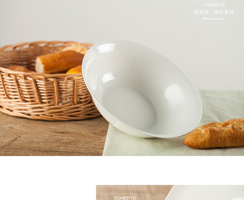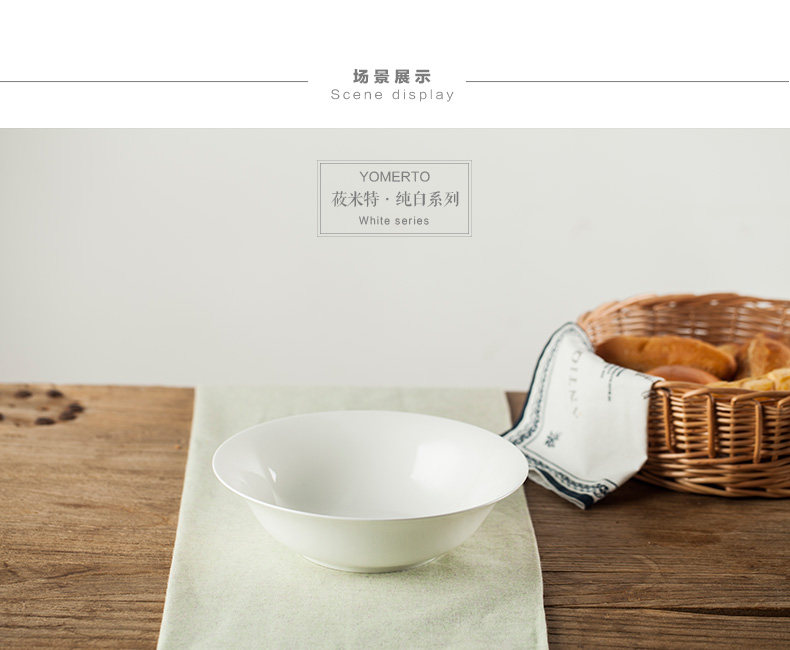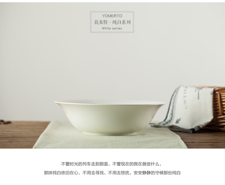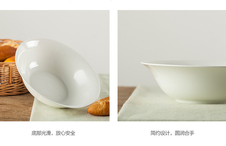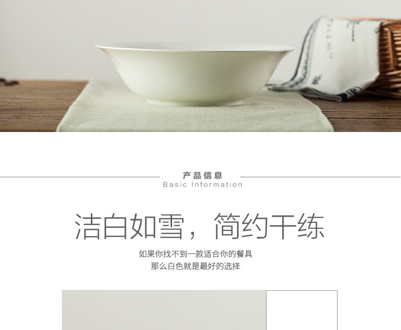 景德镇纯色骨瓷9寸汤碗大碗 简约白色大号陶瓷碗餐具沙拉骨瓷汤碗