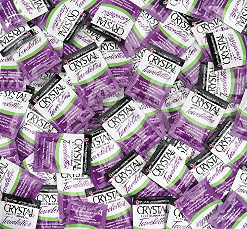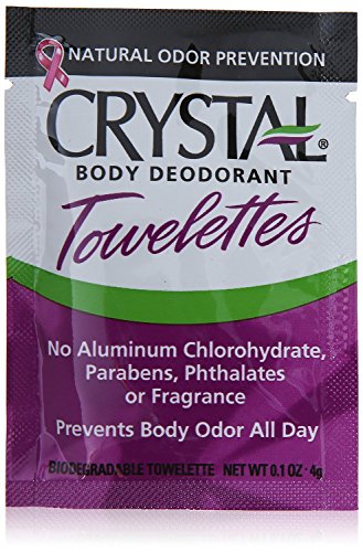 Feel fresh on the go, wherever you happen to be. CRYSTAL BODY DEODORANT 100% biodegradable unscented towelettes offer all the great benefits of our awarding-winning deodorant products in a convenient packet. Pop some into your pocket or purse, take them to the gym, on a trip, or camping and backpacking… and stay fresh all day long. Contains no harmful chemicals, aluminum chlorohydrate, aluminum zirconium, parabens or phthalates. CRYSTAL is the world's leading natural mineral salt deodorant. While other products attempt to mask odor with fragrances or plug up pores with harsh chemicals like aluminum chlorohydrate or aluminum zirconium, CRYSTAL deodorants PREVENT odor naturally by creating an invisible protective barrier against odor causing bacteria. CRYSTAL is hypoallergenic, safe, healthy, and totally effective. Dermatologist tested.Feature