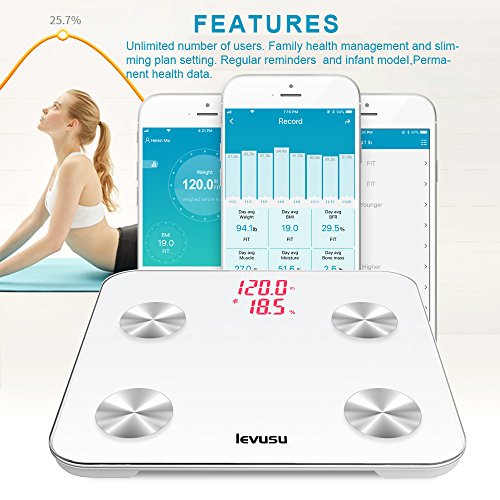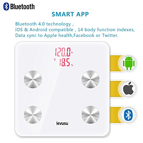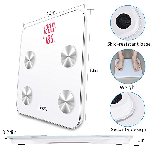 -. Title : LEVUSU 13*13 inches Smart Body Analyzer Digital Body Fat Weight Bathroom Scale Ultra-white Tempered glass, 400 Pounds IOS & Android APP (Stainless)