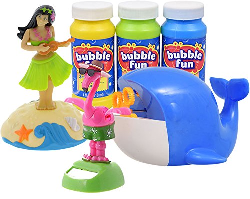 Studio : Greenbrier International Publisher : Greenbrier International Binding : Toy Product Description Bundle of Solar Dancing Hula Girl and Flamingo and Whale Bubble Machine and 3 jars of Bubbles. Say aloha to dancing solar hula girls! Just expose the solar strip to light and watch as they sway back and forth and provide you with your own personal hula dance on demand. Perfect for office or home. Plus, they make the perfect gift. Adorable plastic whale will create an endless sea of bubbles! Simply add the bubble solution to the reservoir and turn them on. Whale-shaped bubble machines blow air through a rotating set of bubble-wand tips to create a continuous flow of bubbles. A must have for kids' birthday parties and picnics. Requires 2 "AA" batteries. Batteries and bubble solution not included. 0