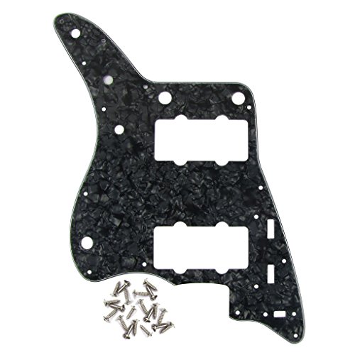 Studio : iknmusic Publisher : iknmusic Product Description For Vintage Fender Style Jazz master Style Guitar.Color: Black Pearl3Ply 17 mounting screw holes in the side of the pickguard.Celluloid Pearl Plate adn PVC MaterialAnti-scratch to protect the guitar.Double protective film on the pickguard, it will become very smooth after you peel off the protective filmPackage Included:1 Pcs Pickguard 25pcs mounting screws 0