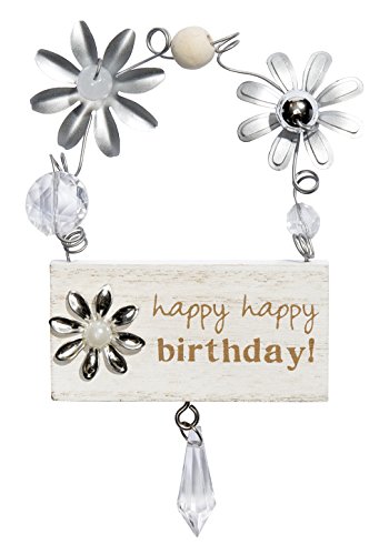C.R. Gibson Treasured Plaque, Distressed Wood Plaque With Beaded Handle, Measures 3" x 5.5" - Happy Birthday!