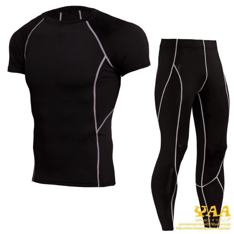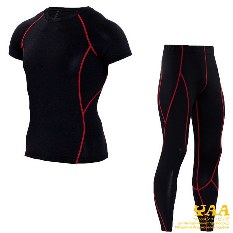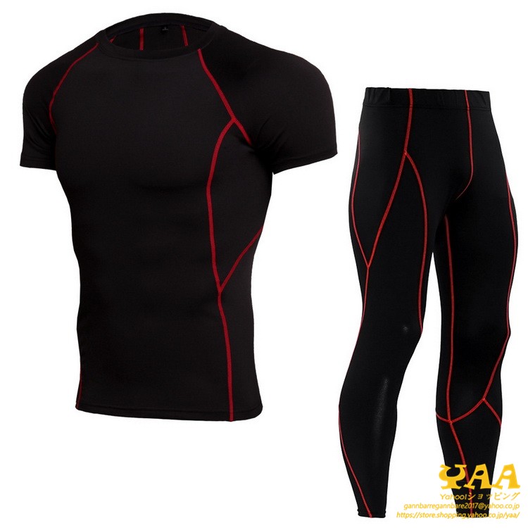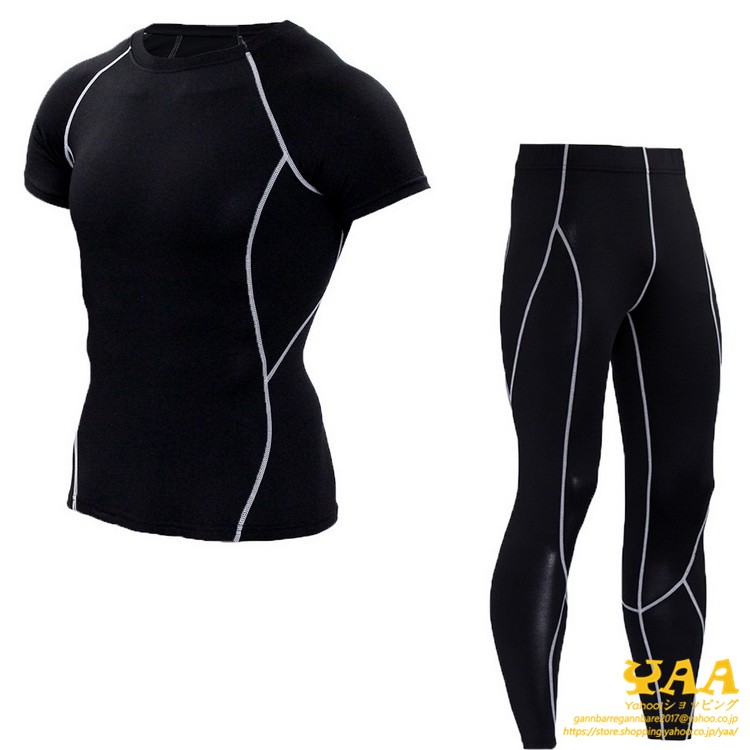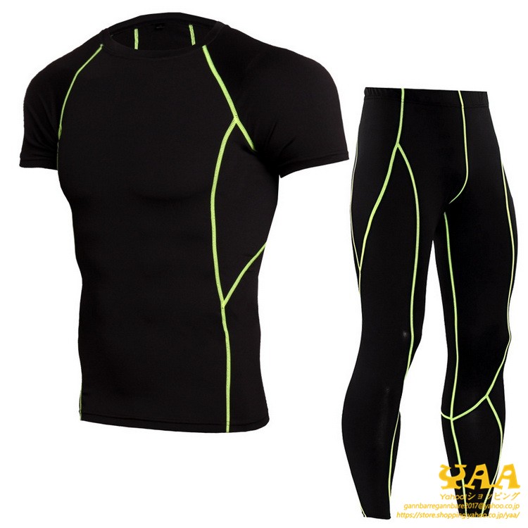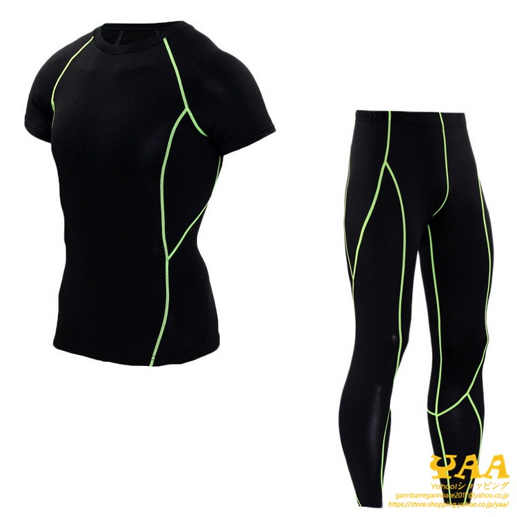 コンプレッションウェア インナー タイツ 半袖袖 上下セット メンズ アンダーシャツ ランニング 登山 クール 吸汗 吸水 速乾 冷感