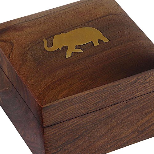 - Feature : BEAUTIFUL BRASSWORK The elephants jewelry box has an adorable elephant on its lid for added charm / PREMIUM CONSTRUCTION Jewelry box wood construction is done entirely by hand with sheesham hardwood / IDEALLY SIZED Wood box measures 4" by 4" by 2.75"; Ideal for jewelry, trinkets & loose change / INDIAN DECORATIVE GIFT Each handmade jewelry box is the work of a skilled craftsman from Saharanpur / UNIQUE GIFT FOR ANYONE The elephant jewelry box is practical, beautiful and one of a kind!