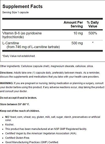 Country Life L-Carnitine 500 mg w/B-6, 60 caps