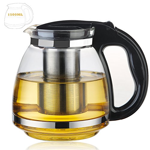 -. Title : Glass coffee Tea Pot-52oz | 5 cup | 1.5 Liter | 1500ML Rust Free Mesh Infuser,Flowering Tea Pot.Best Glass coffee Tea Pots for Home Kitchen,Hotel,Restaurant and Office