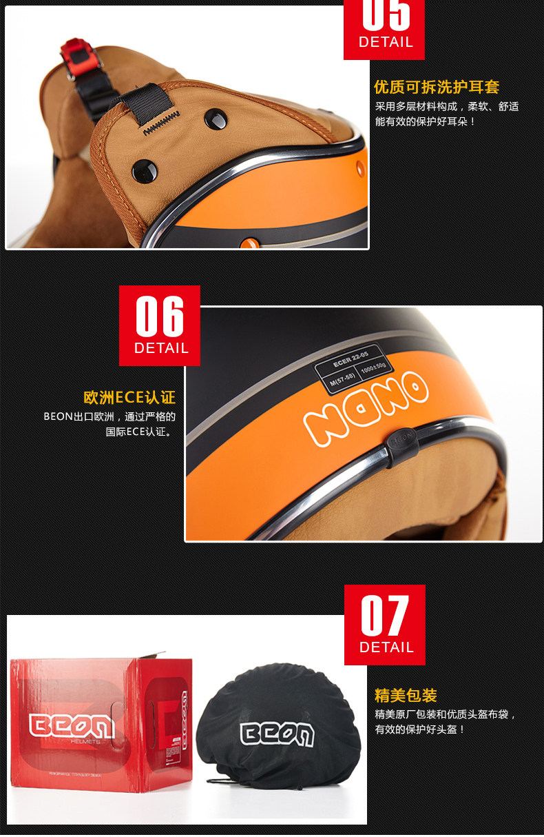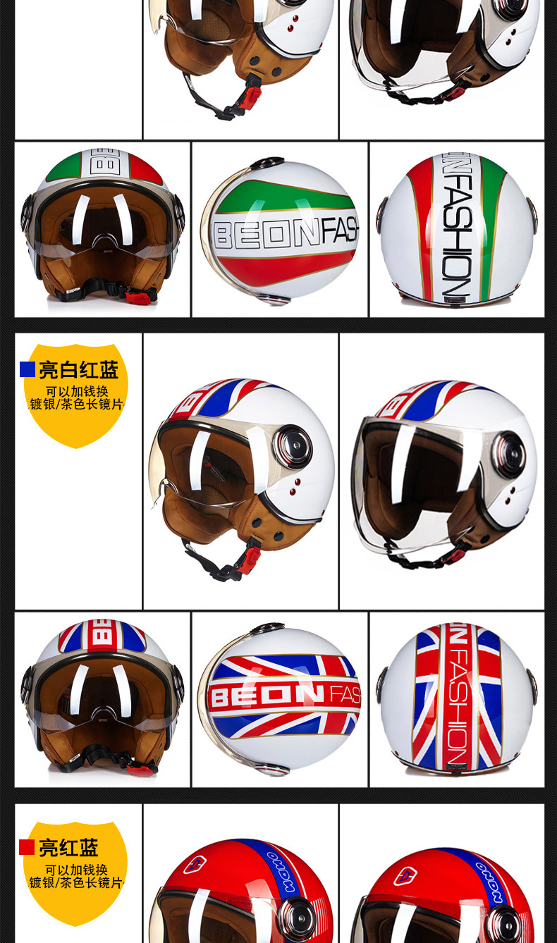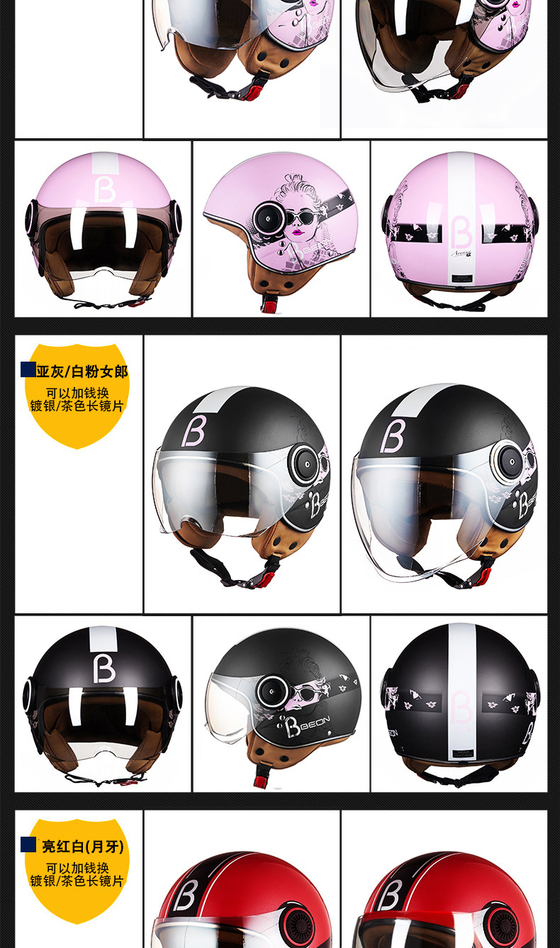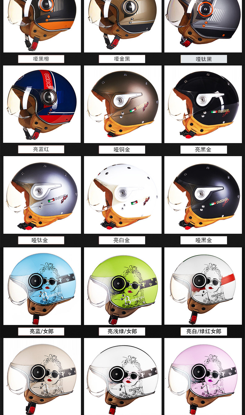 󰄬BEON摩托车头盔复古个性酷男女电动车半盔半覆式夏季跑盔轻便四季