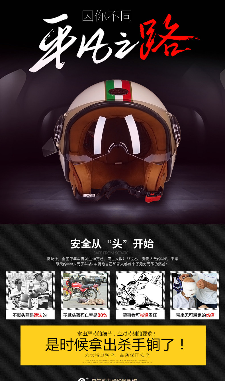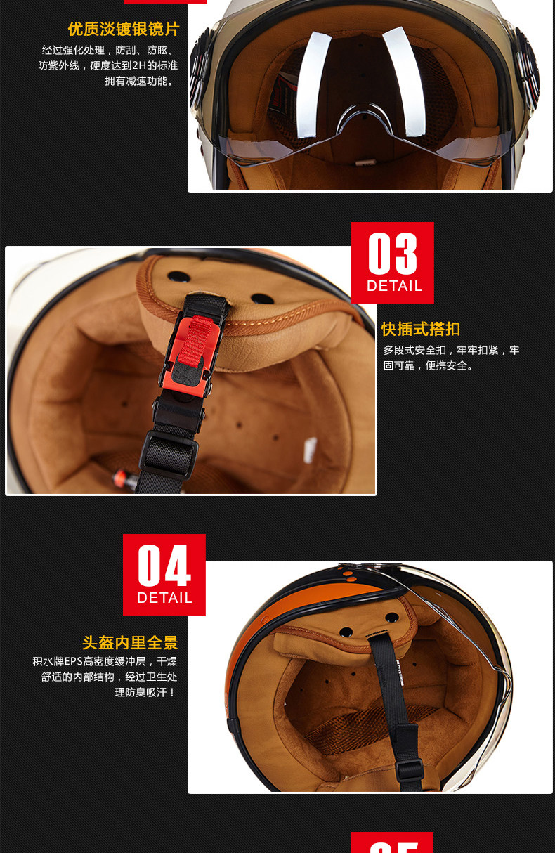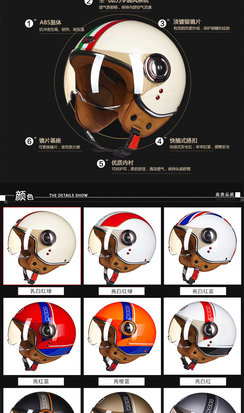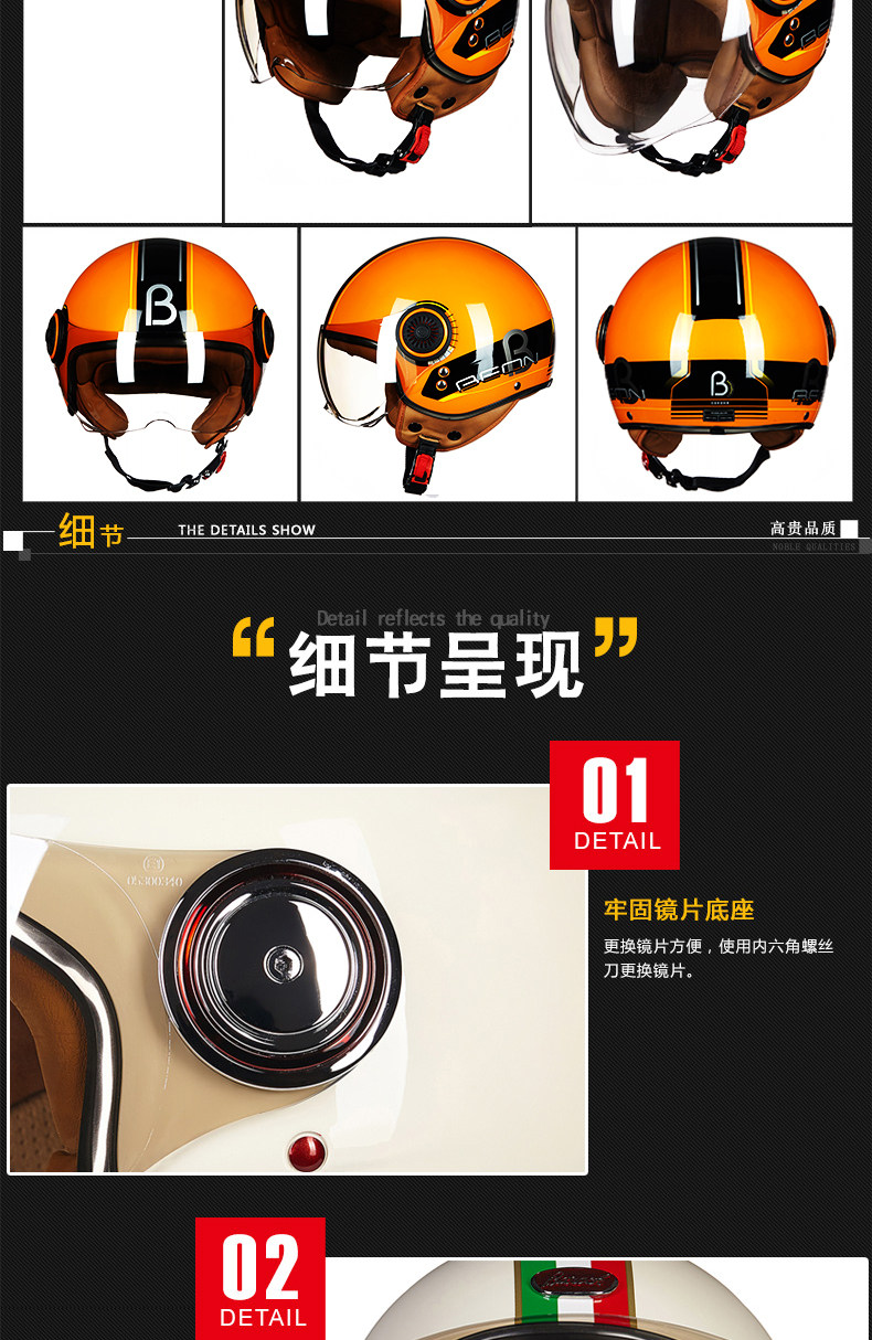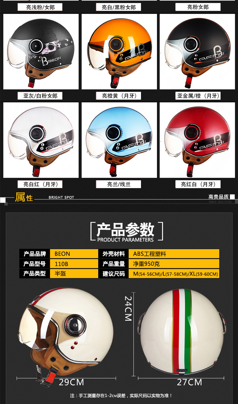 󰄬BEON摩托车头盔复古个性酷男女电动车半盔半覆式夏季跑盔轻便四季