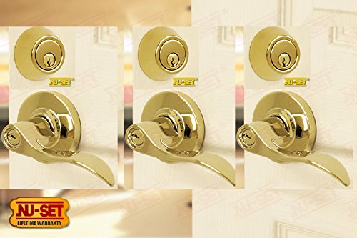 -. Title : 3 Sets of NuSet Abbey Grade 2, Commercial Entry Door Lever Locks and Single Cylinder deadbolt , Same Keyed