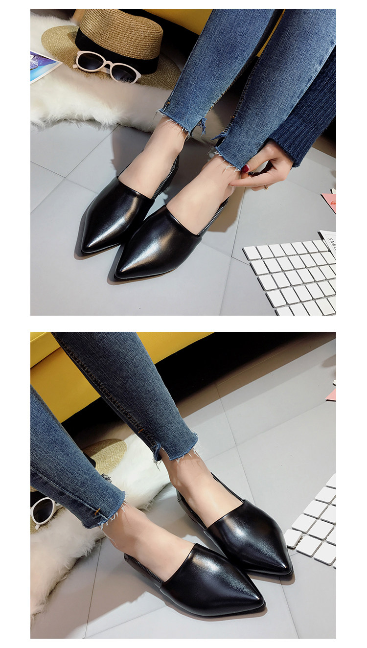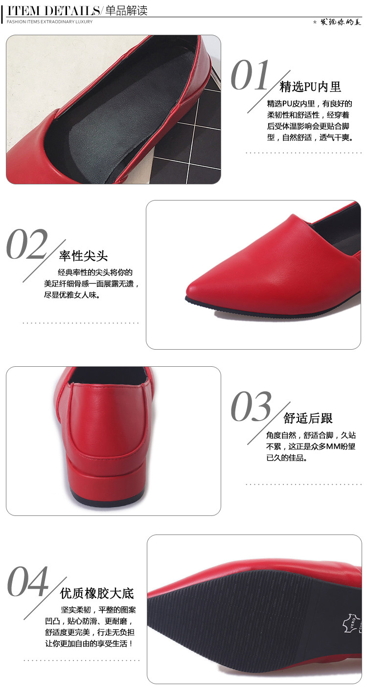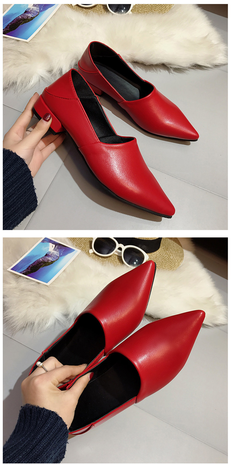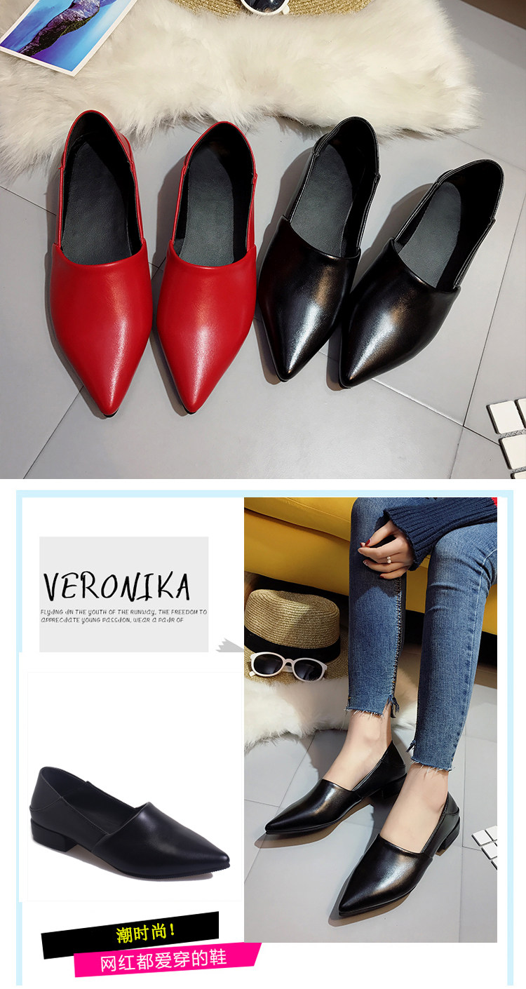 韩版春季新款休闲尖头单鞋软底浅口百搭工作粗跟低跟女鞋瓢鞋