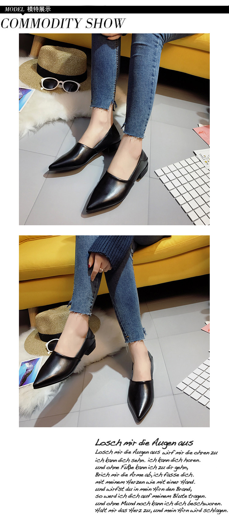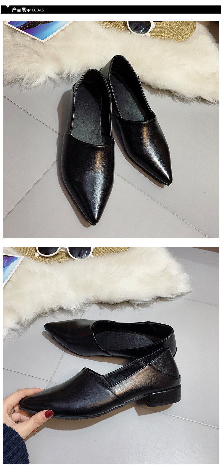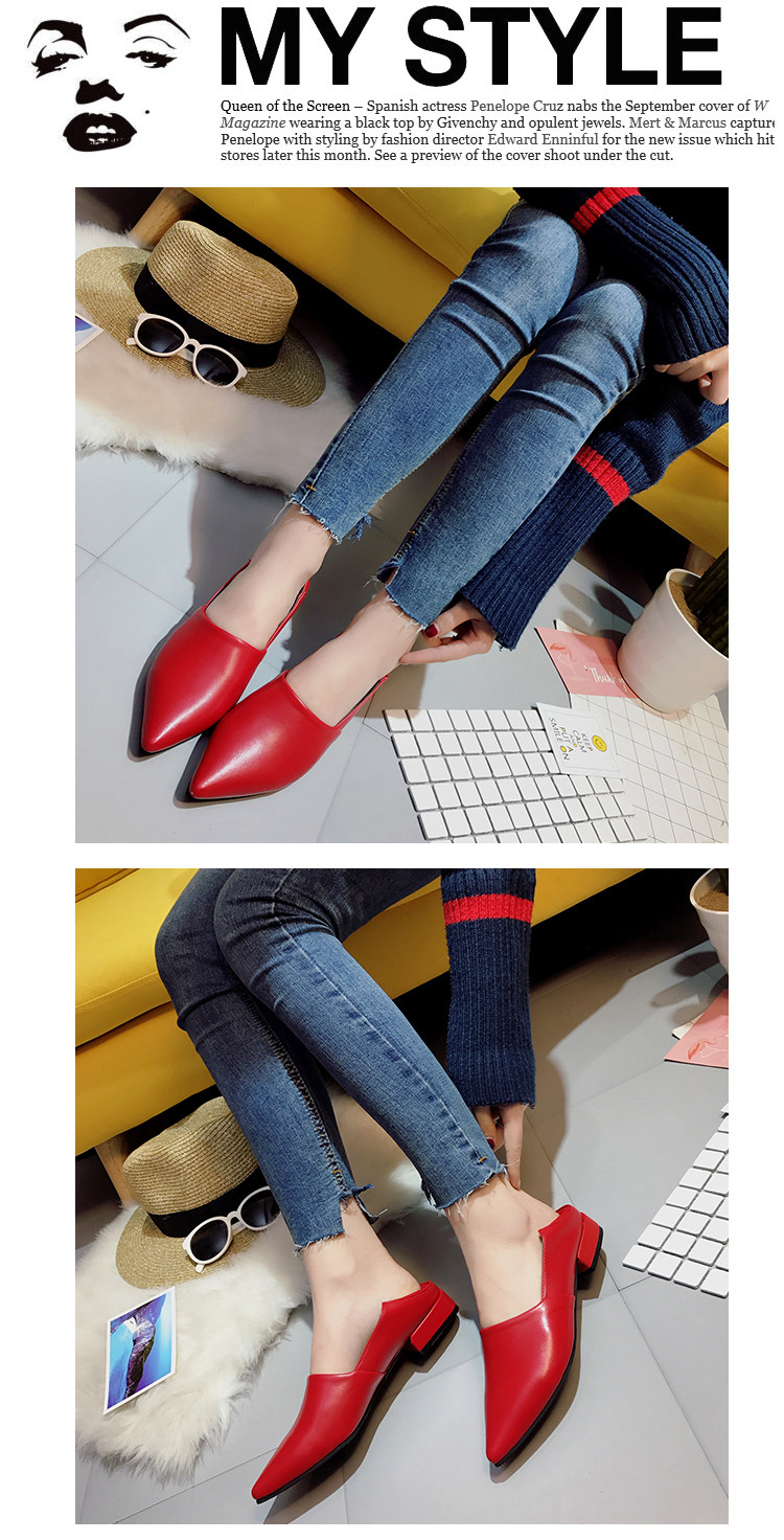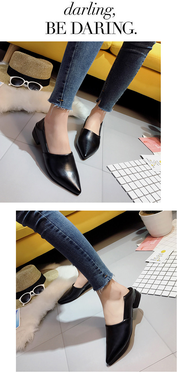 韩版春季新款休闲尖头单鞋软底浅口百搭工作粗跟低跟女鞋瓢鞋