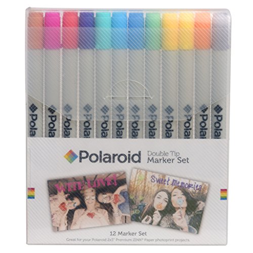 Polaroid Colorful Fine & Chisel Double/Twin Tip Markers for Zink 2x3 Photo Paper Projects (Snap, Zip, Z2300) - Pack of 12