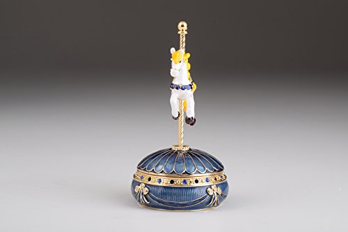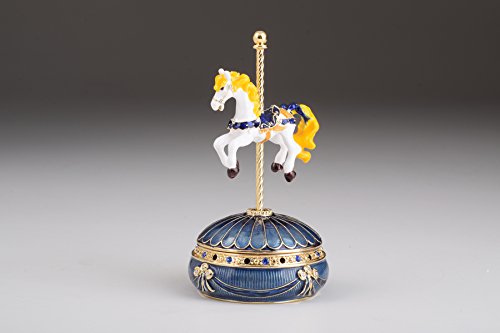 Blue Faberge Egg with Royal Horse Handmade Trinket Box Swarovski Crystals
