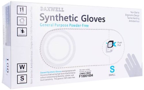 Daxwell Synthetic PVC Glove, Powder Free, Small, White (Box of 100)