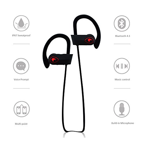 -. Feature : SUPERB SOUND QUALITY - Advanced Audio Drivers paired with the latest Bluetooth V4.1 technology delivers astounding acoustics. / LATEST BLUETOOTH 4.1 TECHNOLOGY - Our brand new design features the latest CSR chipset, improving the range along with battery life. / QUICK CHARGE BATTER - Delivers up to 8 hours of playtime and 220 hours of Standby time. The T-1 Pulsar also has CVC 6.0 noise reduction and the ability to connect two smartphones simultaneously. / STATE OF THE ART - Cutting Edge IPX7 water resistance protects the T-1 Bluetooth Headphones from sweat and rain. Rest easy knowing your headphones are 100 percent sweatproof. / FULL DEVICE COMPATIBILITY - Compatible with any Bluetooth Device including: iPhone 6/6s, 6 Plus/6s plus, 5s 4s, iPad Air, Samsung Galaxy S6,S5,S4, HTC M9, LG Flex 2 G3 G2, and Other Bluetooth Android IOS Smart Cell phones/PC Devices.