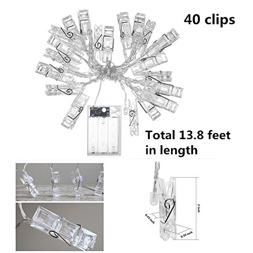 40 LED Photo Clip String Lights,Battery Powered,String Lights for Indoor/Outdoor Decorate- Hanging Photo , Notes, Artwork (Warm White)