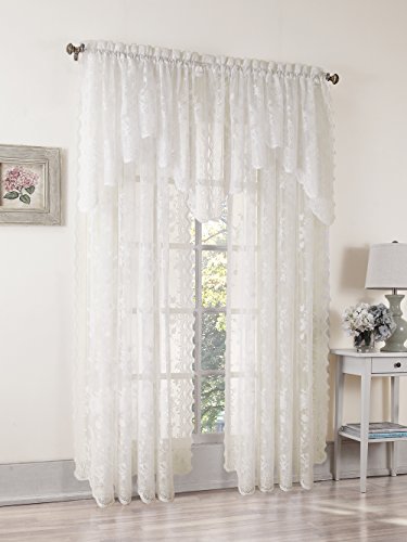 Alison is an elegant jacquard lace curtain panel with an attractive scalloped bottom and edges for a delicate look. A traditional sheer panel with an available valance top treatment.
