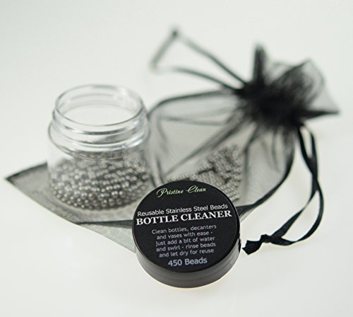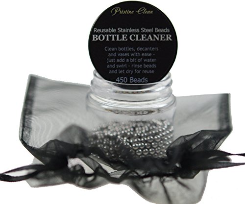 Studio : Pristine Clean Publisher : Pristine Clean Product Description Struggling to clean your favorite container because of hard to reach stains? We love decanters for their elegance but the beautiful design does have its downsides and the downside is keeping it sparkly clean like you first received it. Well, it just got easier to clean your most precious bottles, decanters and anything else with hard to reach spots. These stainless steel pellets will scrub your hard to reach spots to remove sediment and stains from hard to reach areas. These steel beads are simple, reusable and green - getting your container clean without the use of harsh chemicals. Especially Handy for Wine Enthusiasts, Coffee Aficionados and Tea Lovers. ? Gently Add All Pellets to Container ? Fill container with enough water to nearly fully cover the pellets (some containers - based on its shape - may require more water) ? Gently swirl in container for a few minutes, scrub over all problem areas ? When finished, carefully pour contents into mesh bag or strainer ? Rinse and dry pellets Keep away from children and pets - contains very small parts. 0