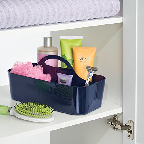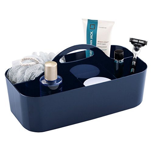 mDesign Bathroom Shower Caddy Tote for Shampoo, Soap, Razors - Medium, Navy Blue