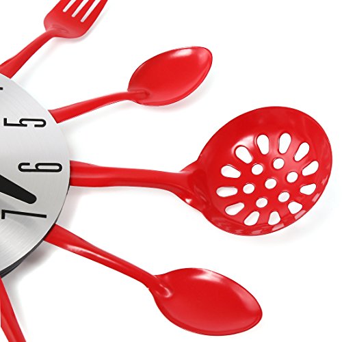 -. Feature : 14 Inch wall clock with big black numbers, easy to read in far distance. / Non-ticking silent hands get you a good rest or working environment,no distrubing at all. / Come with high quality quartz clock movement and metallic material,more accurate and durable. / Great decorations for kitchen,dinning hall,resturant etc with fashion,creative forks and spoons desgin. / Powered by 1*AA batteries(Sest Use Carbon Batteries), energy saving. Anything unclear or problem,just do not hesitate to contact us.We are sure get you perfect solutions.