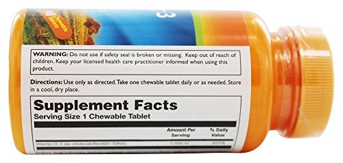 Suggested Use As a dietary supplement take one chewable tablet daily or as needed - Or as directed by your healthcare professional. Supplement FactsServing Size: 1 Chewable TabletServings Per Container: 90Amount Per Serving% Daily Value***Vitamin D-3 (as cholecalciferol)(D-3)(fish)2,500 IU625% ***Percent Daily Values are based on a 2,000 calorie diet