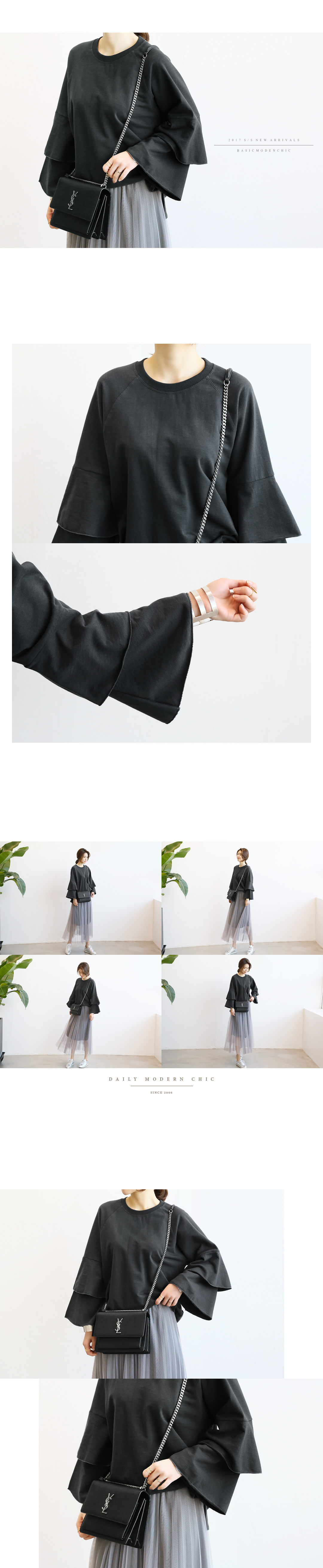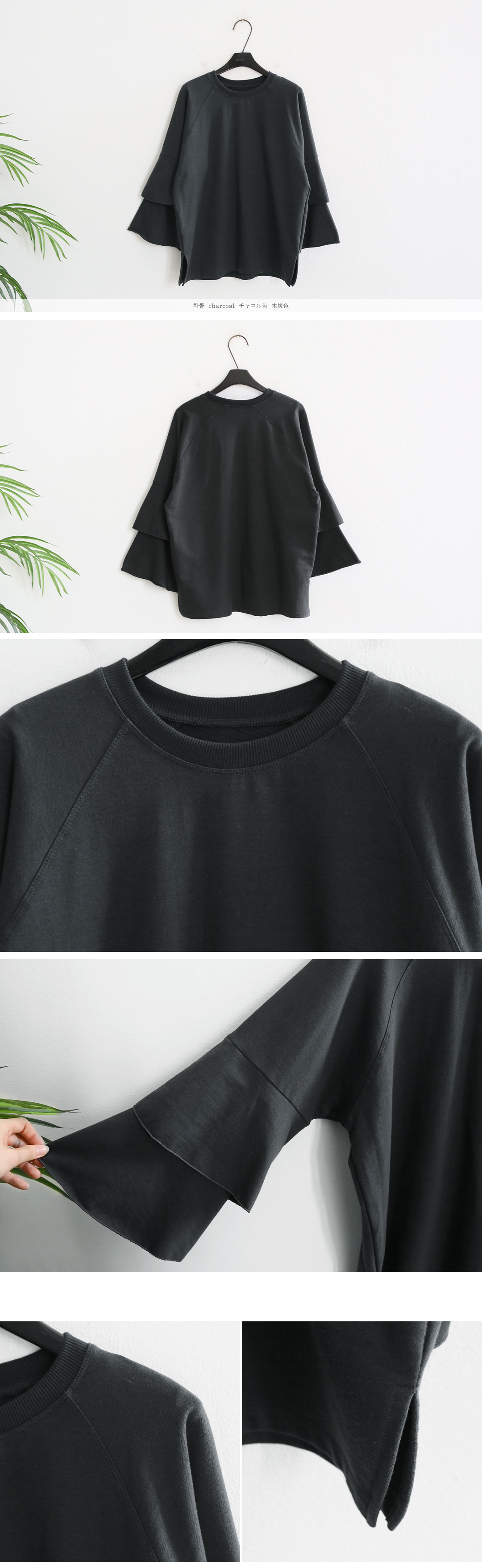 한층 다가온 S/S시즌에 입으면 너무 매력적인 티를 소개할게요:)라운드넥라인으로 단정한 이미지를 보여주구요소매부분 프릴캉캉디테일로 사랑스러운 포인트를 주었답니다면100% 소재로 민감한 바디에도 부담감없이 착용하기 좋구요낙낙한 사이즈감으로 여유로운 바디핏을 보여주며 체형커버에도 도움을주는 아이템이랍니다 다양한 팬츠에 레이어드하기 좋아 자주 손이 가는 아이구요트렌드에 민감하지않아 소장가치도 높답니다 서둘러 초잇하세요