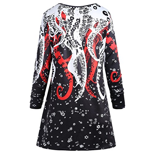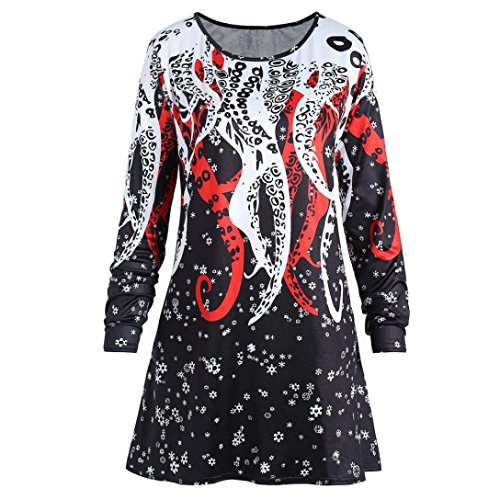 (fly_dream)/Accessories/Cold Weather Accessories/DIRECT FROM USA/fly_dream Women Casual Printing Round Neck Dress Ladies Long Sleeve Mini Dress (S, Black)