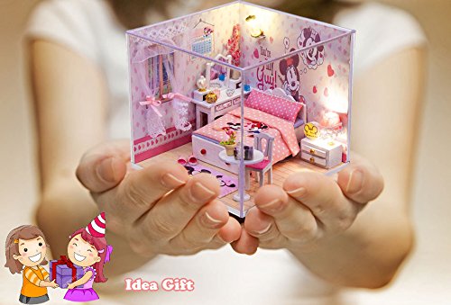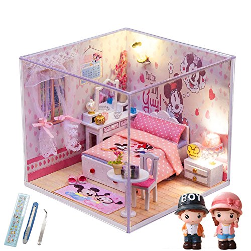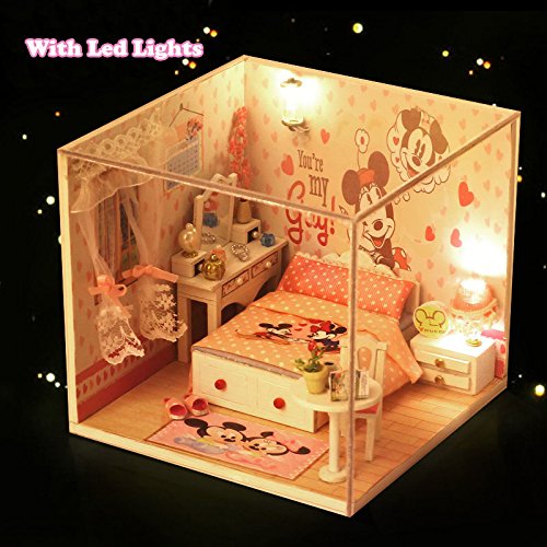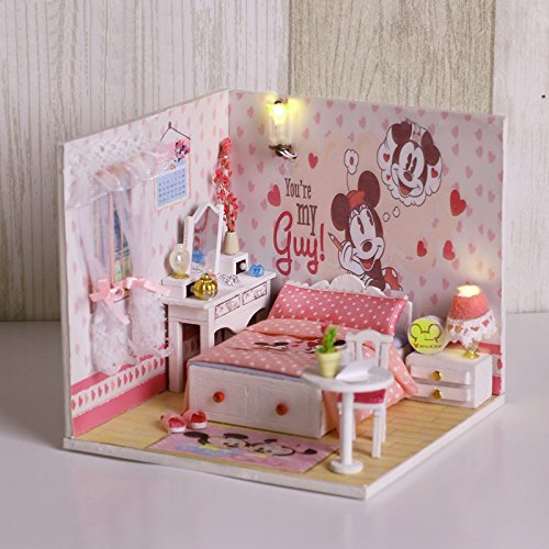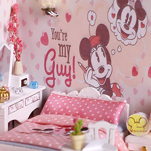 -. Title : Cuteroom Dollhouse Miniature Wooden DIY House Room Kits With Dolls And Furniture Mickey Room