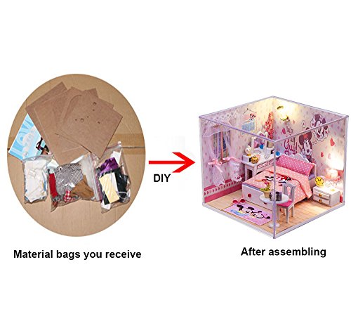 -. Feature : All Dollhouse things shown in the pictures are included, with Dolls and Tools / Finished Product Size:5.1*5.1*4.7 inches / Color Instruction, each steps has pictures to show you how to assemble / It's very romantic to send DIY gift to friends, lover, family, kids as a gift... Means more to make it by yourself! / DIY Dollhouse is the miniature of real house, All the materials are almost the same as real house so cute and beautiful