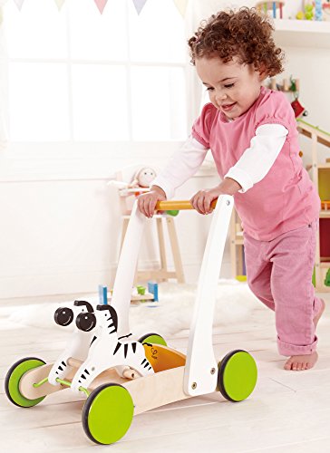 - Balanced walker provides a sturdy base for pulling up to stand while rubber rimmed wheels protect floors