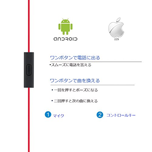 -. Feature : 1. iPhoneやAndroidスマホなど対応可能で、耳にぴったりフィットして、重低音の効いた正確なサウンドを実現、理想的なサウンド体験を楽しめるカナル型イヤフォン。ワンタッチで音楽再生や通話応答が可能なマイク付リモコン搭載。 / 2. 構造上密閉性が良くて、遮音性能も良好なため、騒音のやや大きい場所でも高音質ヘッドホンを装着しまま音楽等を楽しめる。 / 3.スポツイヤホンは独自のイヤーチップにより、長時間着けていても快適な装着感を実現、汗や水しぶきに強い優れた防滴仕様を実現。 / 4.快適な着用のための小型・軽量設計イヤホン。3つのサイズ(S/M/L)のシリコン製イヤーキャップや三つのイヤーフック(S/M/L)付属、適当なサイズのイヤーピースーを取り付けて、耳へのフィット感が向上します。 / 一年間保証:初期不良はもちろん、開封・使用後に不具合等があった場合でも、購入後一年間以内であれば交換・返金対応可能。安心してご購入ください。