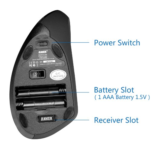 -. Title : Anker 2.4G Wireless Vertical Ergonomic Optical Mouse, USB, 800 / 1200 / 1600DPI, 5 Buttons - Black