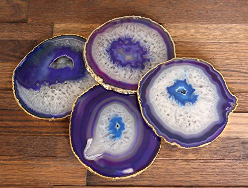 -. Title : Agate Coaster Cup Mat 3.5 Inches - 4 Inches Natural Coasterstone Crystal Gemstone slices Beverage Coasters for Drinks Gift Set of 4 with Feet