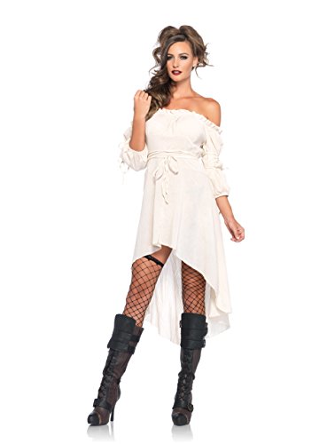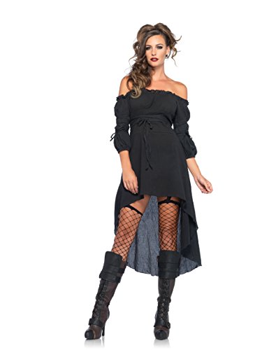 -. Binding : Apparel -. Brand : Leg Avenue -. ClothingSize : Medium/Large -. Color : Black -. Department : womens -. Feature : Great base halloween piece to build your own costume / Perfect versatile dress to create your own costume Great for a warrior, goddess, or pirate -. Genre : Historical -. IsAdultProduct : 0 -. Label : Leg Avenue Costumes -. Manufacturer : Leg Avenue Costumes -. MPN : LA2700IVRY -. PackageQuantity : 1 -. PartNumber : LA2700IVRY -. ProductGroup : Apparel -. ProductTypeName : ADULT_COSTUME -. Publisher : Leg Avenue Costumes -. Size : Medium / Large -. Studio : Leg Avenue Costumes -. Title : Leg Avenue Women's High Low Peasant Dress