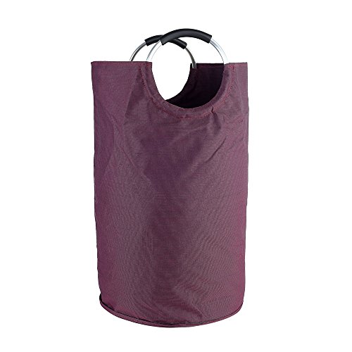 Crystallove Canvas Foldable Tall Laundry Hamper Tote Storage Baskets Washing Clothing Bags with Rings (Purple)