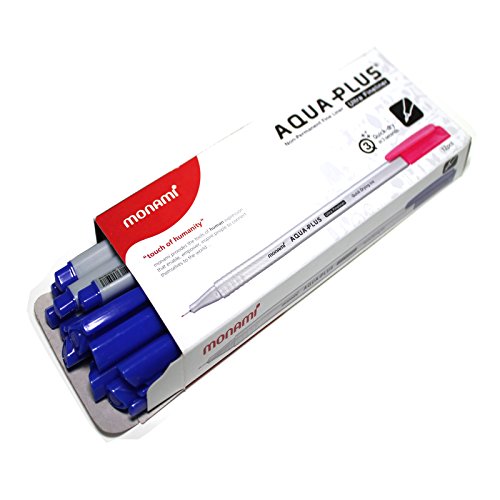-. Title : Monami Aqua-plus Triangular Design Water-based Ultra Fineliner -0.3mm- Blue - Pack of 12 Pens