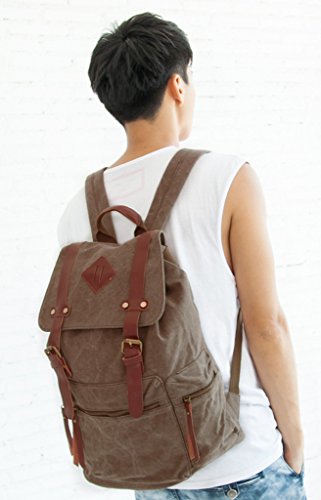 -. Title : YALUXE Vintage Canvas Backpack 14" Laptop School Bag Hiking Travel Rucksack for Men and Women