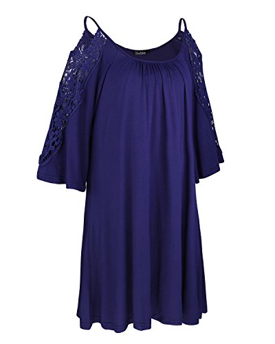 2.Above knee length, 3/4 crochet lace sleeve, cold shoulder design.
