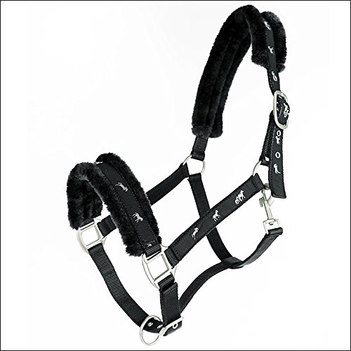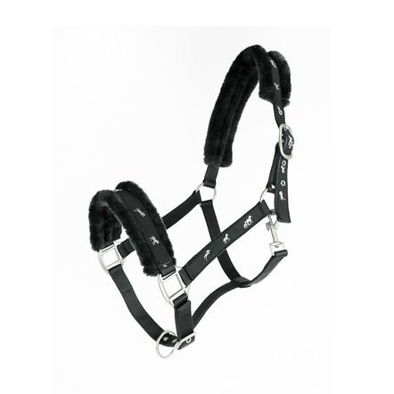 Product DescriptionHalter with silver horse webbing at nose, cheek and neck pieces. Soft synthetic fur lining at nose and neck. Comes with a lead.0