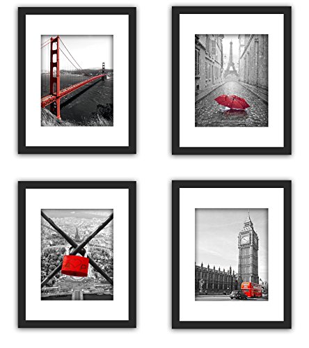 -. Feature : Package include 4Pcs x black wood frame, 12x mats, 4x double side photo, choice using my photo or frame your own photo / 4x wood frame fit 11x14" inch (28x35.5cm) P.R.Ints without mat (Window 10.6 x 13.6"); Frame whole edge size 12.2x15.2 inch (31x38.5cm), 0.78"(2cm) thick; 4x mats matted excat fit 8x10" inch photo, the mat actual opening is about 7.5 x 9.5 inch (19x24cm) / Other 4x mats matted 2 holds fit 8Pcs 4x6" inch photo, the actual mat opening is about 3.75 x 5.7 inch (95x145mm); Other 4x mats matted excat fit 8.5x11" inch Certificate,the actual mat opening is about 8.2 x 10.7 inch (21x27m). We recommend taping the photo to the back of the mat / Frame material is wood,real glass; Easy setup holding on wall(Free holding tools: Nails, Hooks); Free desktop standing or wall hanging / Brand "SMARTWALLSTATION" has been registered and protected.