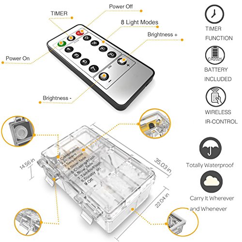 Waterproof-- The wire parts of the 2 set Fairy Lights are fully sealed,thus making it submersible ,can create amazing water scene,and used In the outdoors or garden do not have to worry about climate problems.