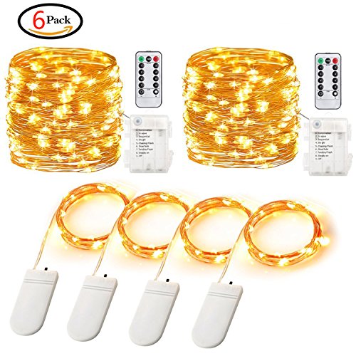 Lookme-US 2 set 5m 50LEDs Copper Wire Firefly Lights with Remote and 4 Pack 2m 20 LEDs Mini Bulb Fairy String Lights for Christmas Wedding Party Bedroom Home Halloween Decor (Warm White)