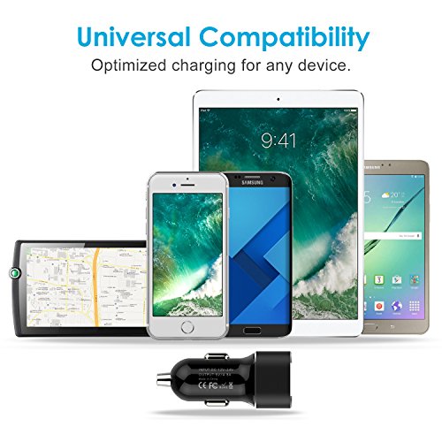 Car Charger, JETech Dual-Port 4.8A 24W Rapid USB Car Charger Fast Cigarette Charger - 0650A