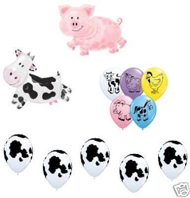 COW PIG FARM BABIES BABY ANIMALS MYLAR LATEX BALLOONS