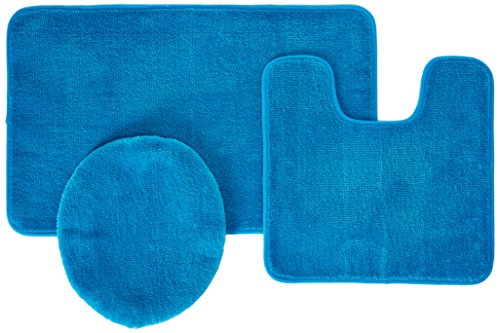 Brandy 3 Piece Bathroom Rug Set, Bath Mat, Contour, Seat Cover - Blue